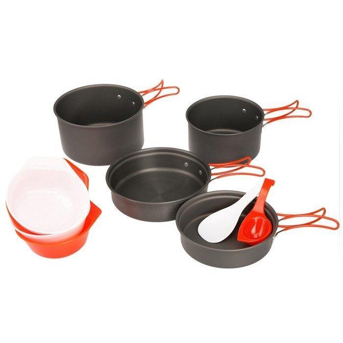 Набір Fire-Maple FMC-K7 зроблений з анодованого алюмінію. Крім того, що він вогнетривкий і міцний, він ще й легко миється. Зверніть увагу, що сковороду можна використовувати також як кришок для казанів. Всі елементи, яких ви торкаєтеся під час приготування, обладнані термоізолювальним покриттям, приємним на дотик під час експлуатації.